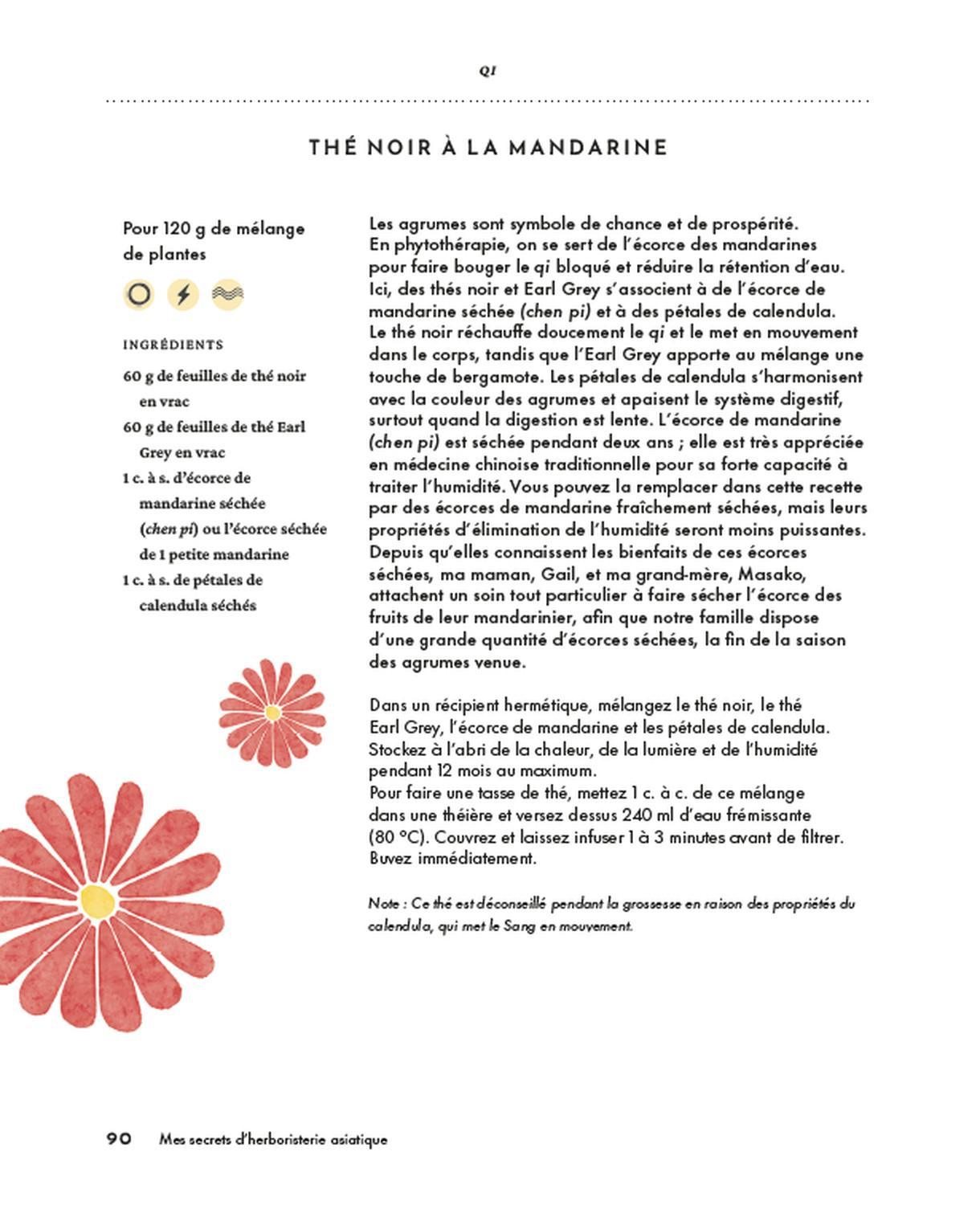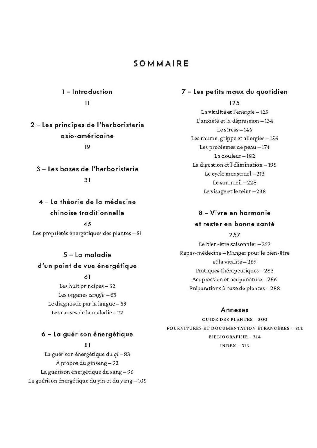 Dans ce magnifique guide illustré et riche en photographies, laissez-vous initier à l’art de l’herboristerie selon les savoirs ancestraux. Vous y apprendrez comment vous réapproprier les pratiques de soin asiatiques, avec les plantes qui poussent où vous vivez – mélisse officinale, rose, consoude, chrysanthème, camomille, et bien d’autres. Grâce à la Médecine traditionnelle asiatique, découvrez la théorie du yin et du yang, le fonctionnement et les méthodes pour harmoniser les substances vitales, et comment favoriser la circulation et l’équilibre des énergies par les cinq éléments. L’autrice vous indique quelles plantes récolter en fonction de vos attentes et besoins, quel matériel privilégier et quel moyen de conservation favoriser pour vos fabrications. Mettez la main à la pâte en préparant vous-même les remèdes naturels pour les petits maux du quotidien – anxiété, rhume, problèmes de peau, mauvaise digestion, douleurs, etc. En appliquant cette mine de conseils pratiques pour rester en bonne santé, apprenez à vivre selon les saisons, à concocter des repas-médecine ou encore à pratiquer un gua sha, une moxibustion, une séance d’acupression…